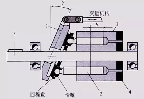 1-斜盤 2-柱塞 3-缸體 4-配油盤 5-主軸