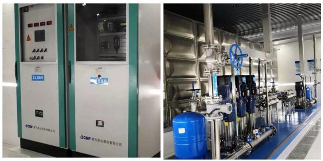 南方智水針對(duì)整改項(xiàng)目小區(qū)打造定制二供整體解決方案,在完成更換泵房軟硬設(shè)施后,另安裝2套恒壓變頻供水設(shè)備,利用不銹鋼隔離護(hù)欄,將生活泵房與消防泵房分離,達(dá)到水質(zhì)、水壓、水量有保障的目的。