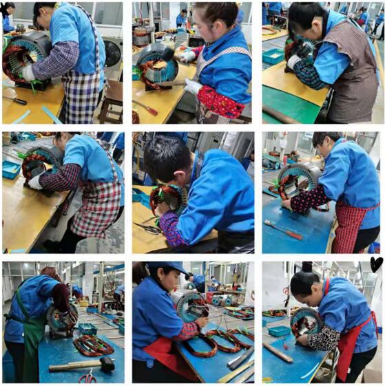 如何在短時(shí)間里面高效完成帶線定子的制作工作,其中包括了嵌線、整形、隔相、套管、焊接,綁扎帶等等一系列工序,這不是一朝一夕就能促成的,是常年來在自己的工作中如何總結(jié)改進(jìn)才能得到的經(jīng)驗(yàn),且僅有經(jīng)驗(yàn)也不夠,還需要有足夠的體力耐力毅力,才能順利地完成。