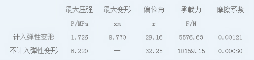 表1:是否計(jì)入彈性變形的軸承潤滑特性參數(shù)對比