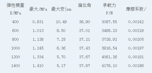 表2:不同彈性模量的潤滑特性參數(shù)對比